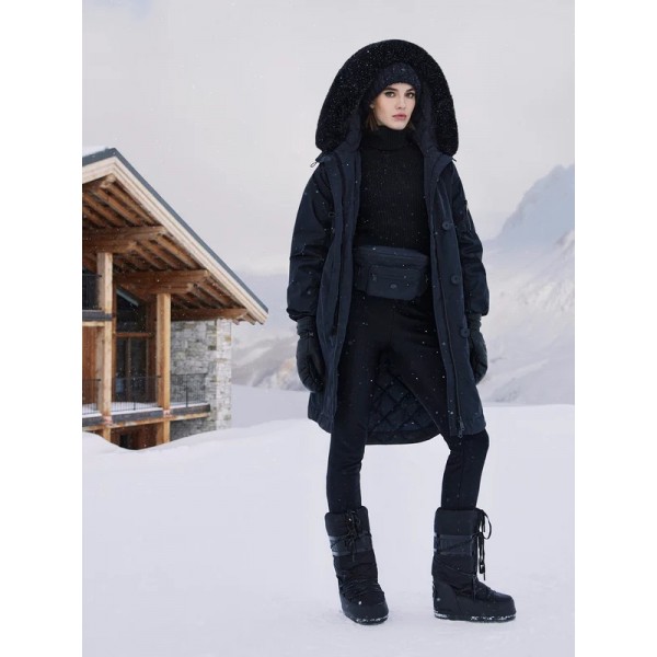 Giacca calda in piuma certificata 3 tasche, 1 tasca interna e una sulla manica per lo skipass Cappuccio staccabile Ghetta rimovibile Tracolle interne Materiali riciclati con finiture anti-odore...