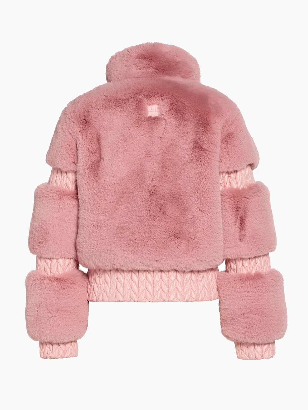 Faux fur jacket with smock details Partly recycled lining with anti-odor finish Primaloft padding 2 pockets and 1 inner pocket Knitted cuffs at inside sleeves Smock details Windproof layer...