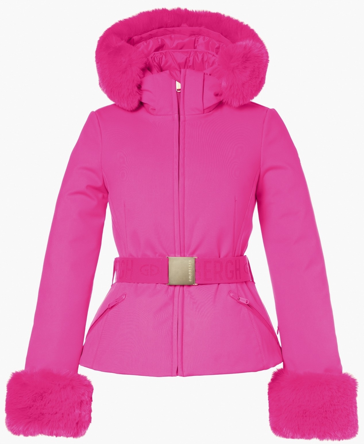 L'elegante giacca da sci GISELLE ha una vestibilità PERFETTA. La cintura Goldbergh accentua la forma. Il cappuccio rimovibile ha un collo di pelliccia ecologica tono su tono che è attaccato con bottoni automatici. All'interno, ci sono due tasche e una ghetta per la protezione dalla neve staccabile. Le maniche hanno un bordo di pelliccia ecologica staccabile.