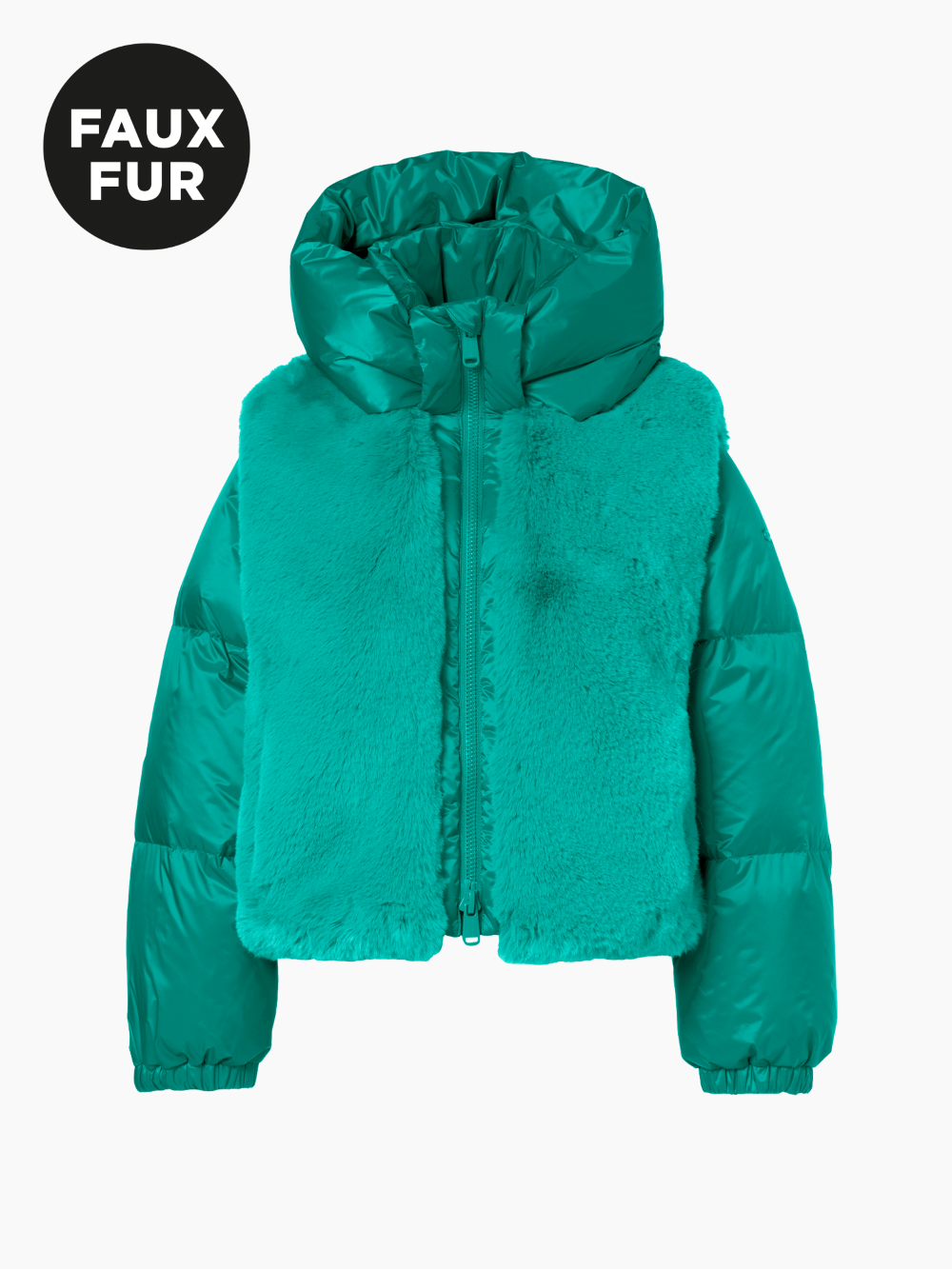 La pelliccia ecologica che la compone la rende esclusiva e accattivante, calda, con la tecnica imbottitura PrimaLoft ed impermeabile da poterla utilizzare anche nelle giornate in cui nevica o in città con lo scooter. Dotata di 4 tasche (2 interne e due esterne con cerniere impermeabili) ha all'interno il porta maschera, la gonnellina anti neve, una tasca per lo ski pass. Una giacca per non passare inosservati nel colore pony pink o nel classico ed elegante nero.