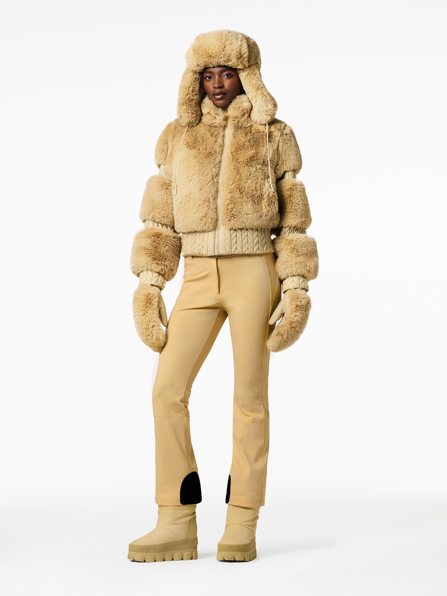La pelliccia ecologica che la compone la rende esclusiva e accattivante, calda, con la tecnica imbottitura PrimaLoft ed impermeabile da poterla utilizzare anche nelle giornate in cui nevica o in città con lo scooter. Dotata di 4 tasche (2 interne e due esterne con cerniere impermeabili) ha all'interno il porta maschera, la gonnellina anti neve, una tasca per lo ski pass. Una giacca per non passare inosservati nel colore pony pink o nel classico ed elegante nero.
