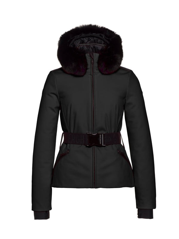 L'elegante giacca da sci Hida ha una vestibilità PERFETTA. La cintura Goldbergh accentua la forma. Il cappuccio rimovibile ha un collo di pelliccia in volpe nero che è attaccato con bottoni automatici. All'interno, ci sono due tasche e una ghetta per la protezione dalla neve staccabile. Doppia cintura per creare sempre combinazioni diverse