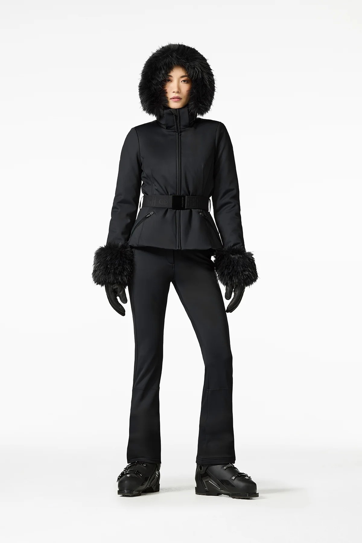 L'elegante giacca da sci Giselle ha una vestibilità PERFETTA. La cintura Goldbergh accentua la forma. Il cappuccio rimovibile ha un collo di pelliccia che è attaccato con bottoni automatici. All'interno, ci sono due tasche e una ghetta per la protezione dalla neve staccabile. Sulle maniche bordi in pelliccia staccabile per accentuare l'eleganza del design