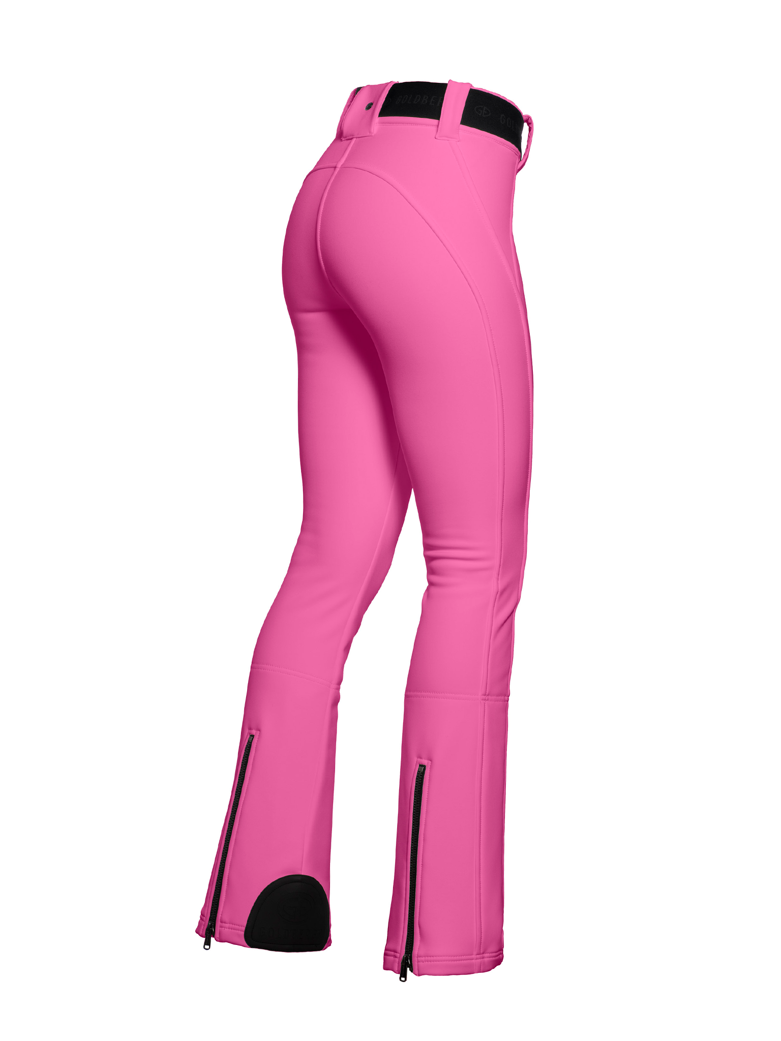 In vita è stretto da una comoda cintura elastica nera con il logo di Goldbergh . Nella parte inferiore del pantalone si trovano due cerniere sul retro che garantiscono facilità nell'indossare gli scarponi da sci .
